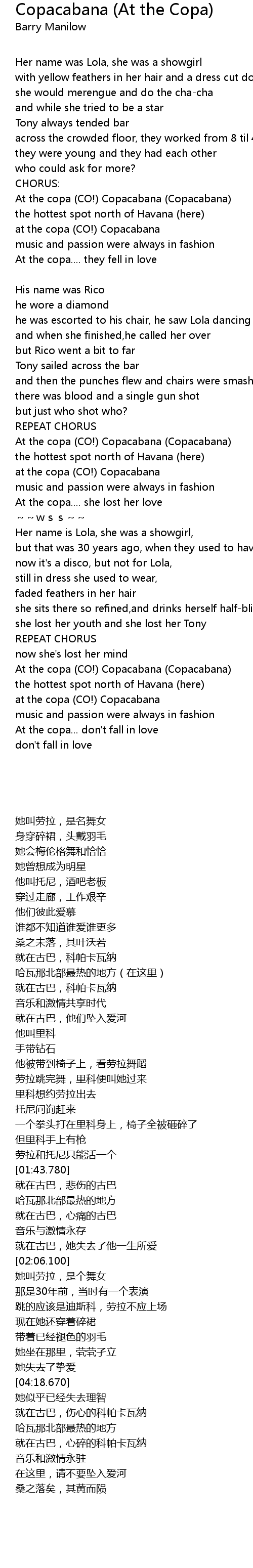 | [01:44.110] | At the copa (CO!) Copacabana (Copacabana) |