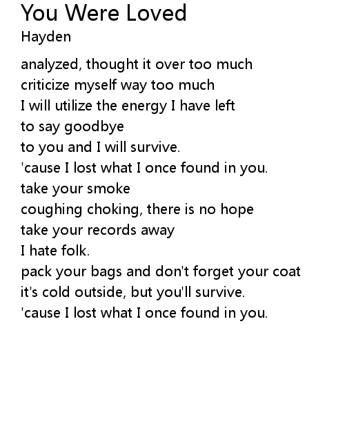 | 歌曲 | You Were Loved |