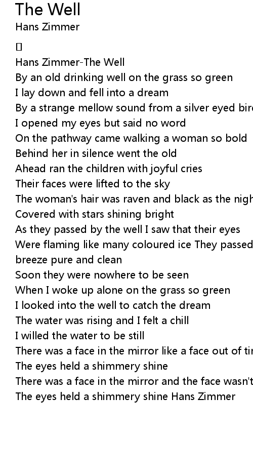 | [00:03.12] | Hans ZimmerThe Well |