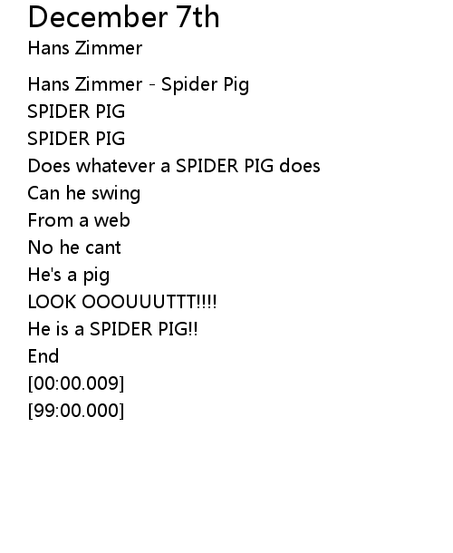 | [00:12.82] | Does whatever a SPIDER PIG does |