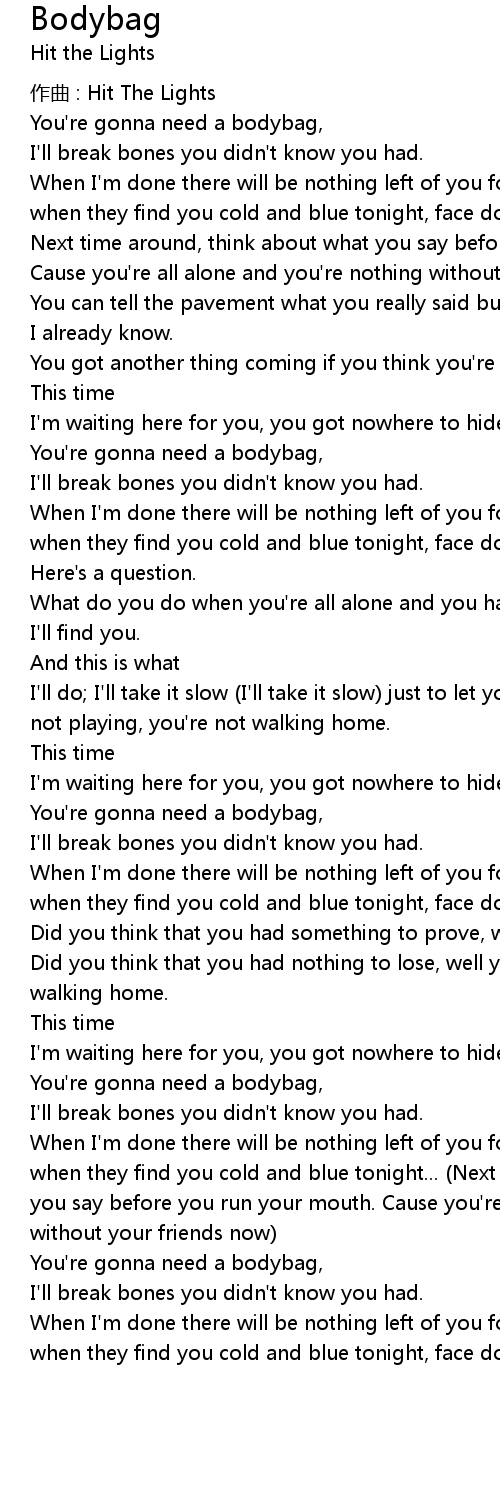 | 歌曲 | Bodybag |