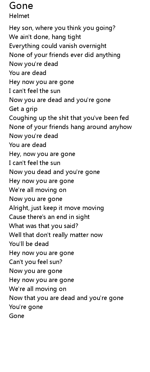 Hey now you are gone