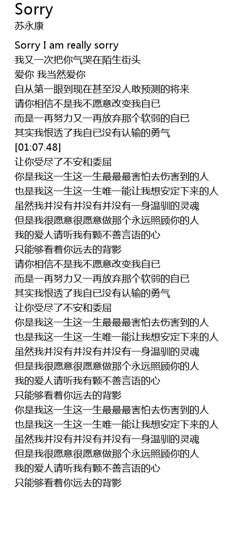 | [01:08.44] | 让你受尽了不安和委屈 |