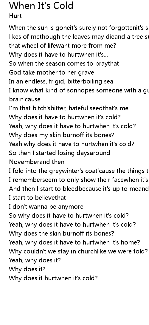 | Yeah, why does it have to hurtwhen it's cold? | |