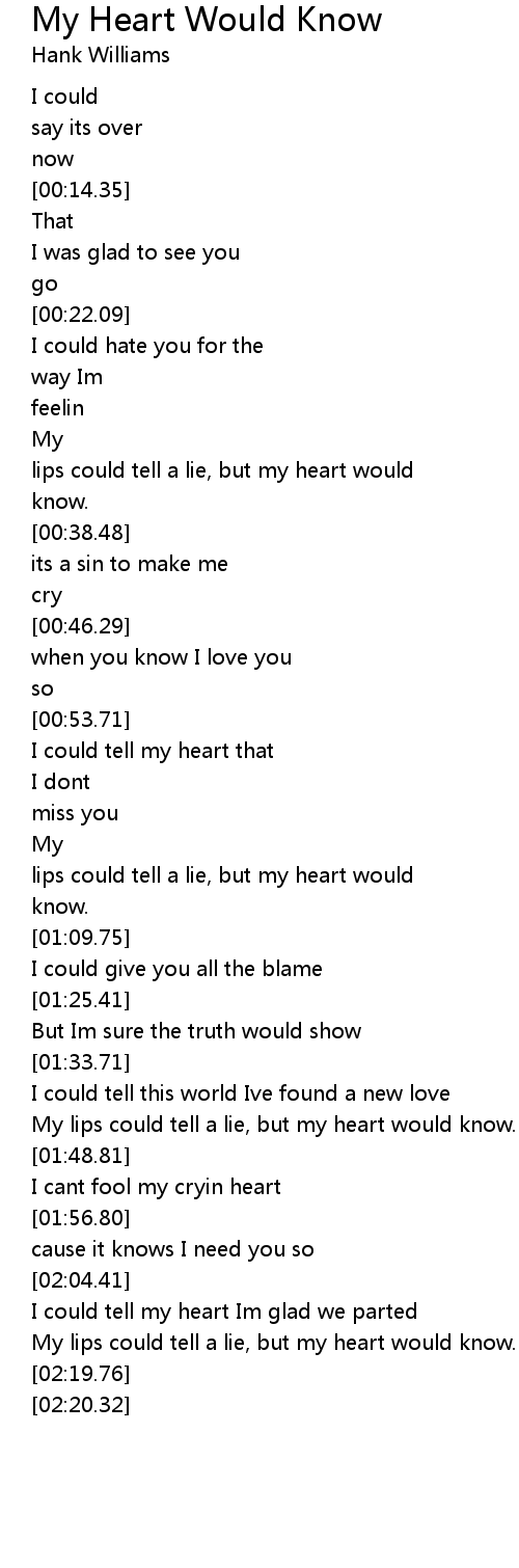 My lips could tell a lie, but my heart would know. |