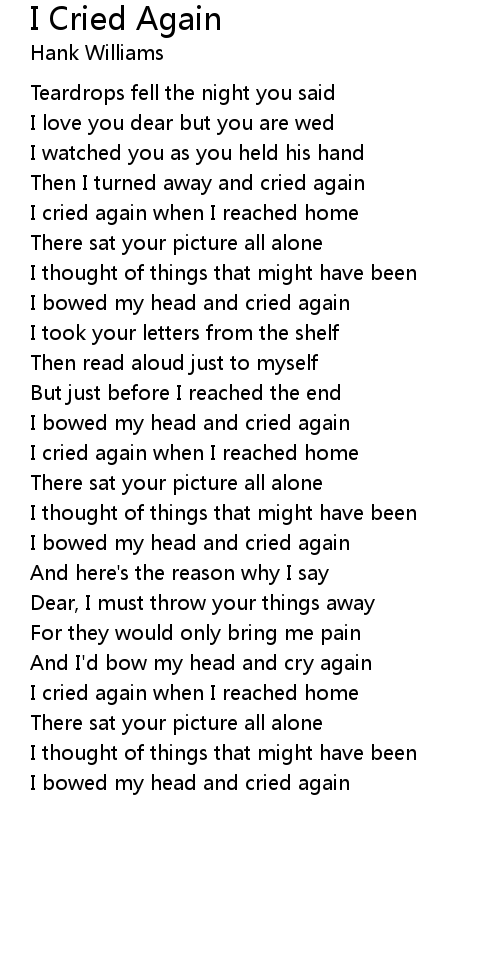 Then I turned away and cried again |