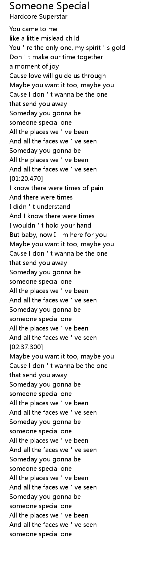 | [03:35.520] | someone special one |