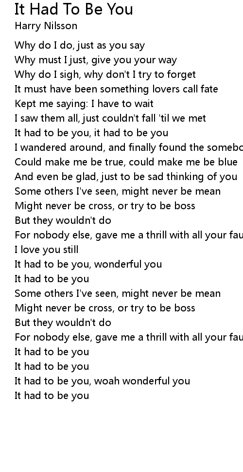 It had to be you, it had to be you |
