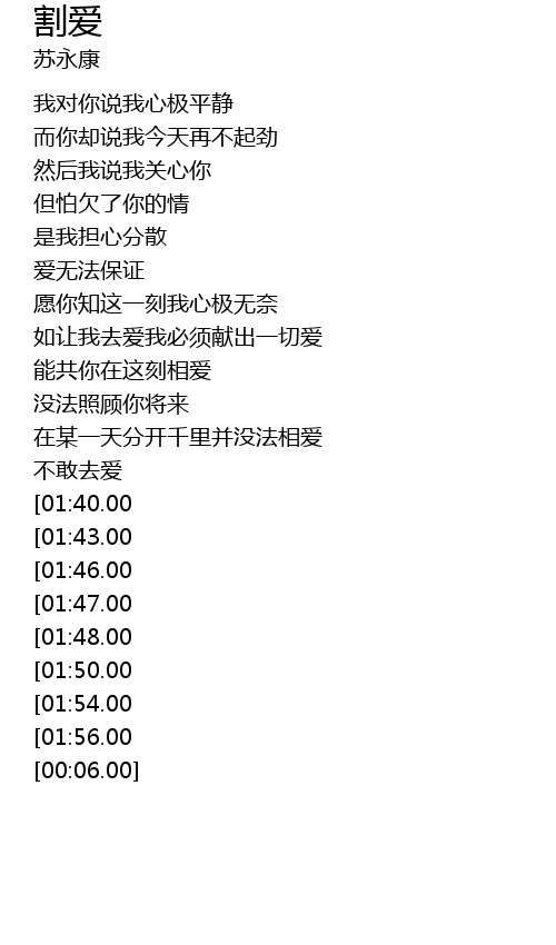 | [02:04.00][01:40.00][01:00.00] | 曾爱得真心不必淌泪 |