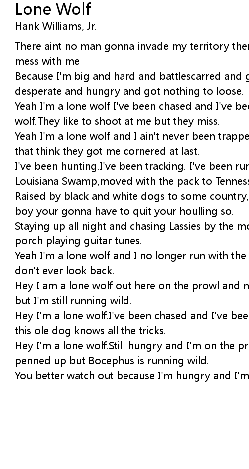 Hey I'm a lone wolf.Still hungry and I'm on the prowl, and most of us have been penned up but Bocephus is running wild.