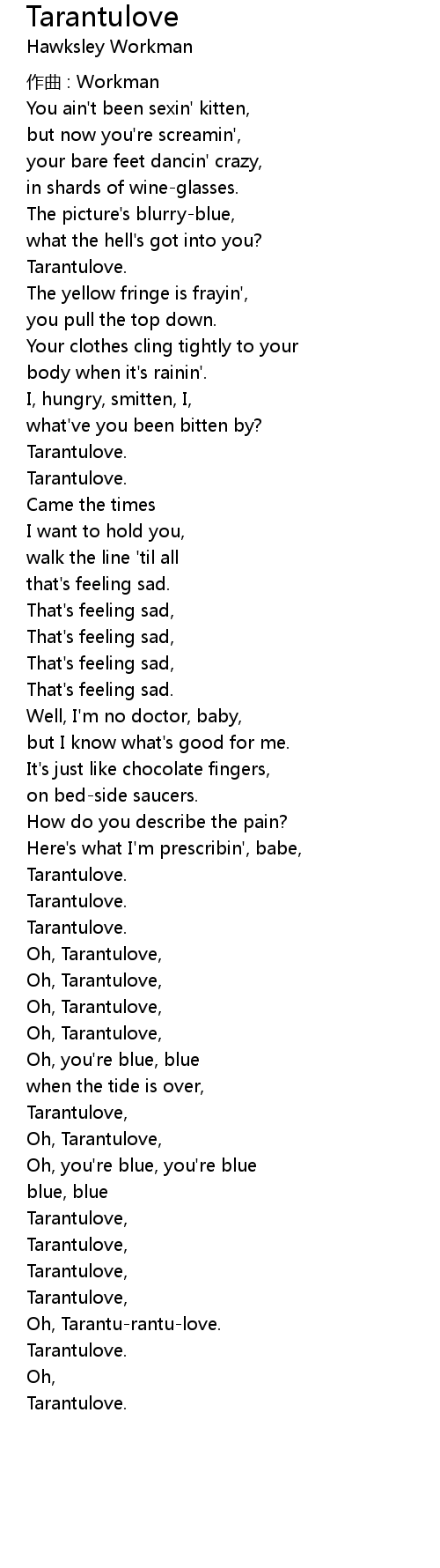 | Oh, Tarantulove, | |
