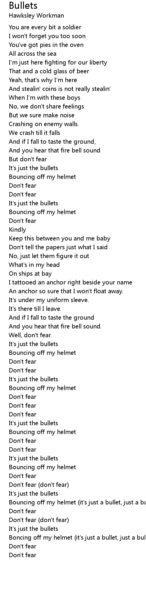 Bouncing off my helmet (it's just a bullet, just a bullet that you hear)