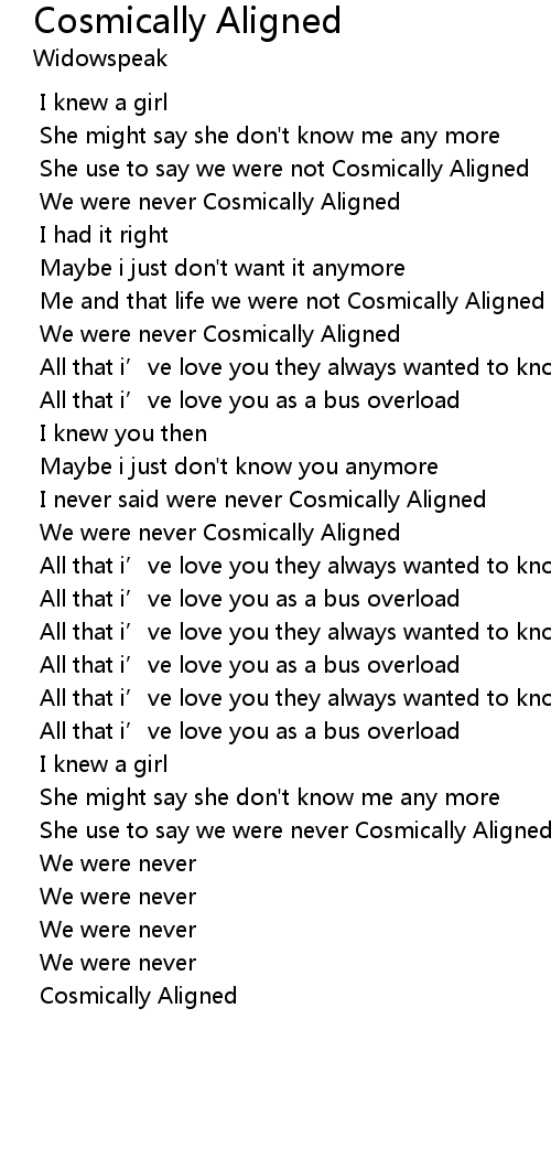 | [04:09.611] | She use to say we were never Cosmically Aligned |