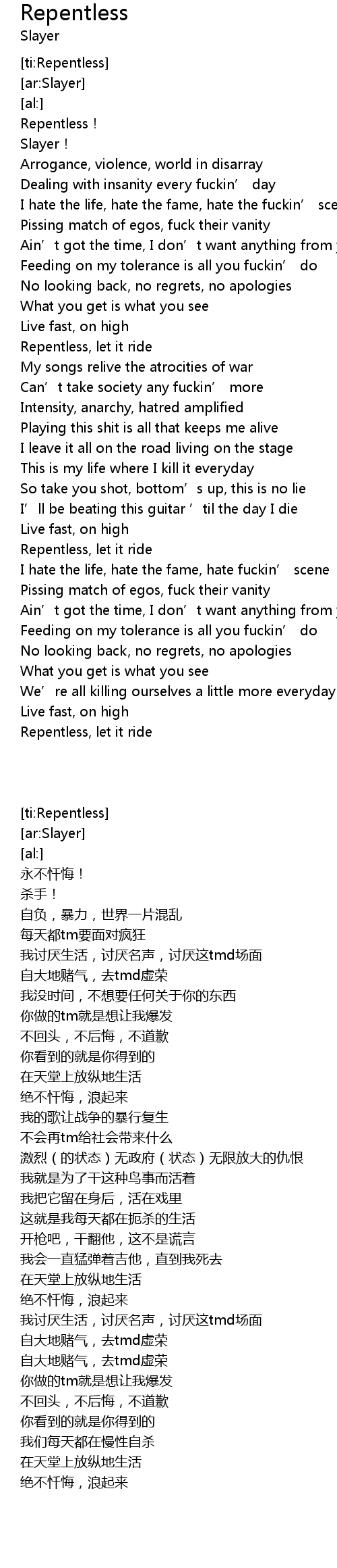 | [00:45.63] | Feeding on my tolerance is all you fuckin' do |