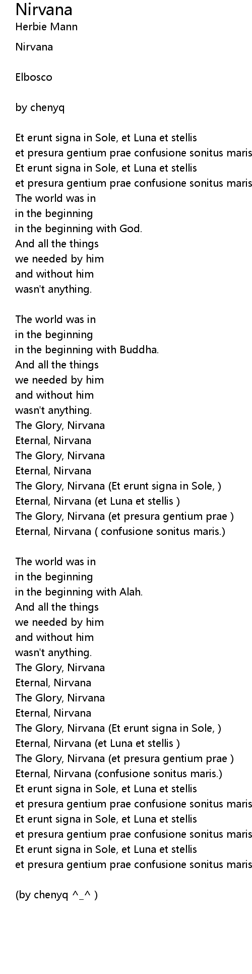 | Eternal, Nirvana confusione sonitus maris. | |
