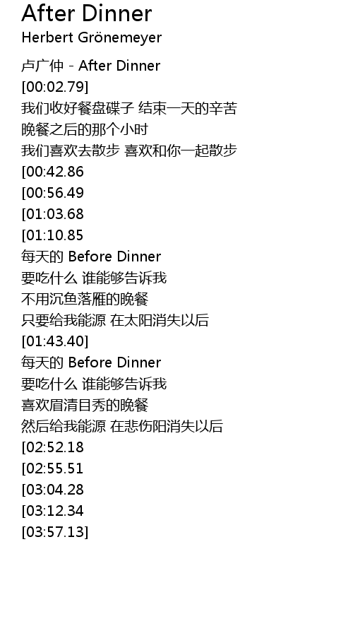 | [00:01.55] | lú guǎng zhòng After Dinner |