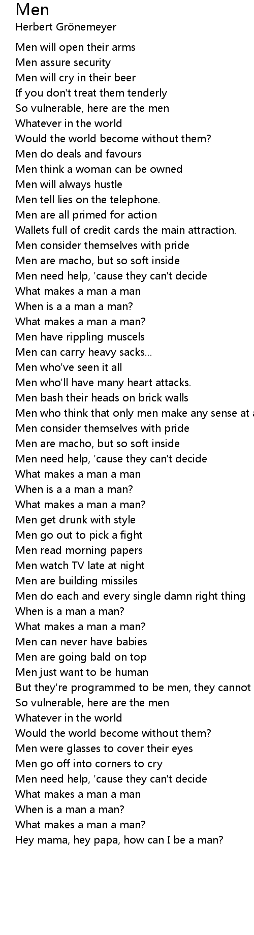 When is a a man a man? |