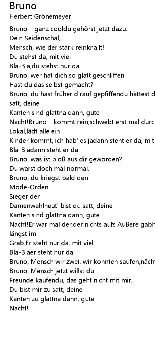| Bruno, du hast früher d'rauf gepfiffendu hättest dich verlachtheut' bist du satt, deine | |