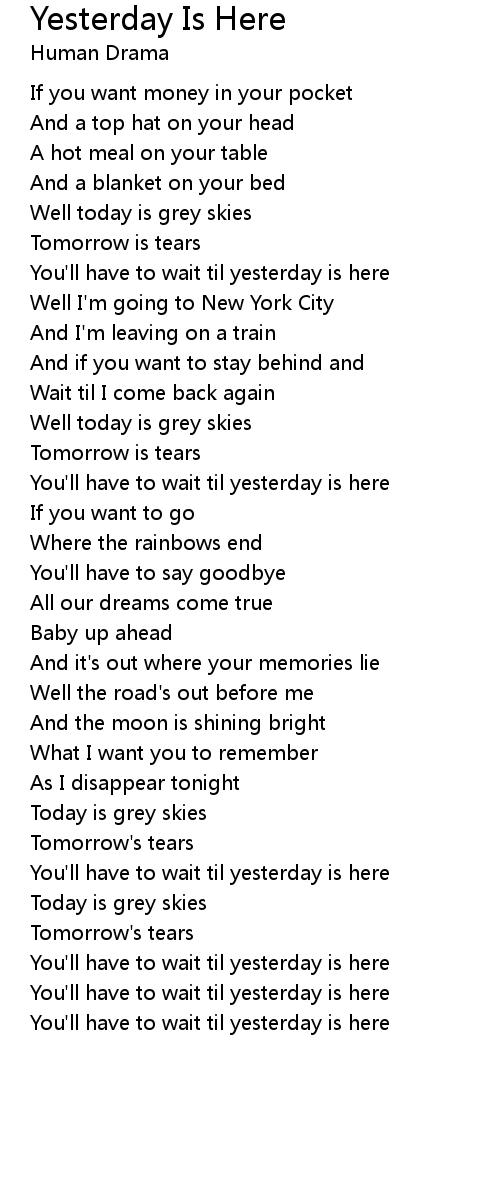 You'll have to wait til yesterday is here |