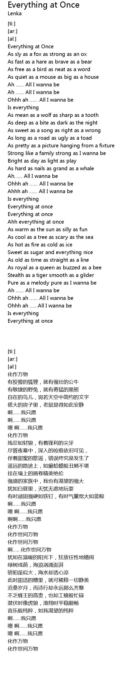 | [00:32.77] | Ohhh ah …… All I wanna be |