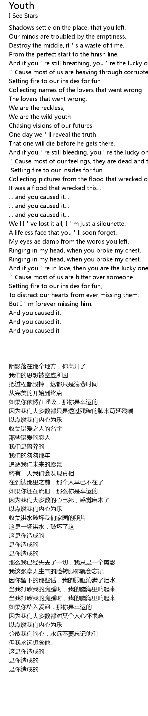 | 歌曲 | Youth |