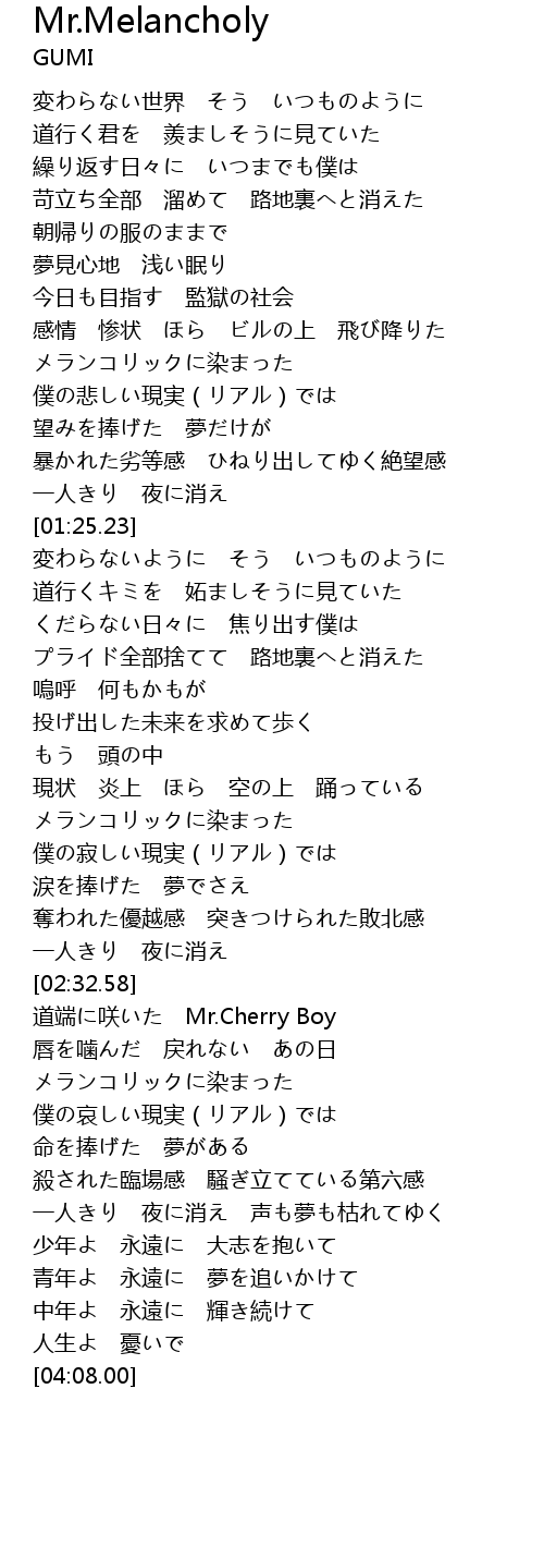 | [03:21.75] | 道端に咲いた Mr.Cherry Boy |