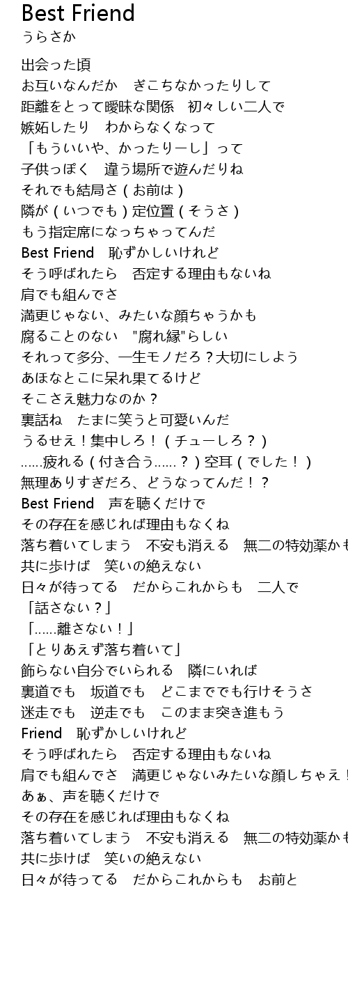 | [01:21.36] | Best Friend 恥ずかしいけれど |