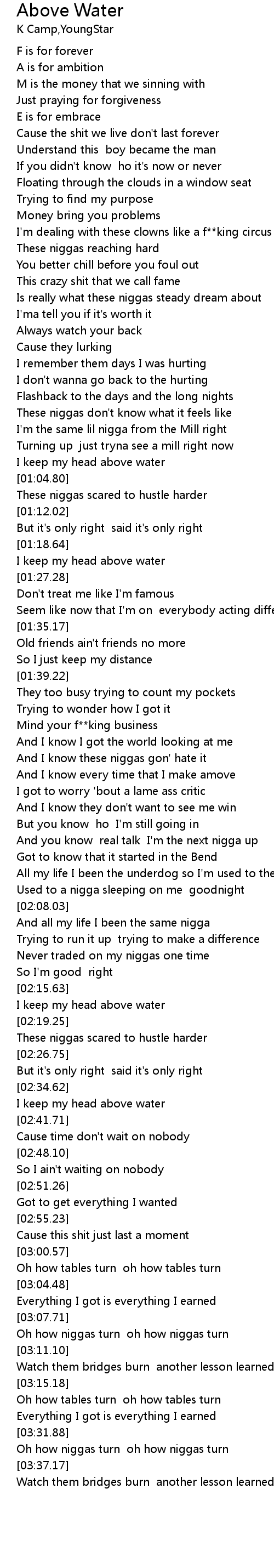 | [02:16.69] | I keep my head above water |