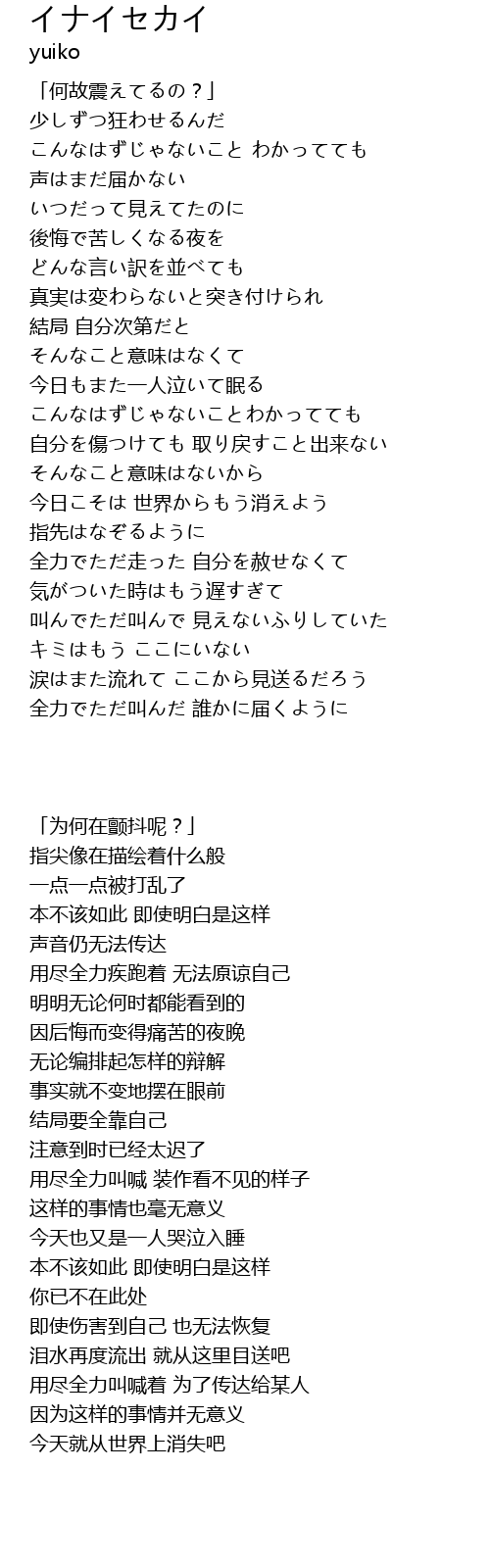 | 歌曲 | イナイセカイ |