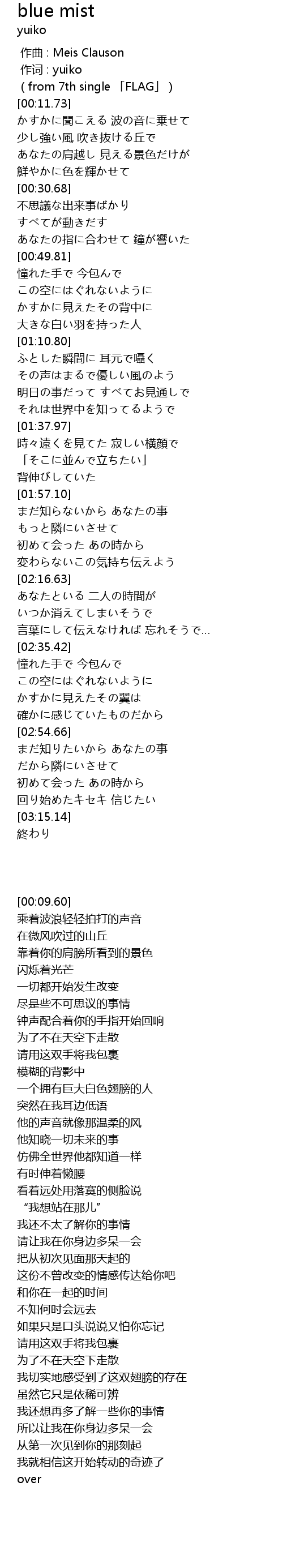 | [00:09.60] | (from 7th single 「FLAG」) |