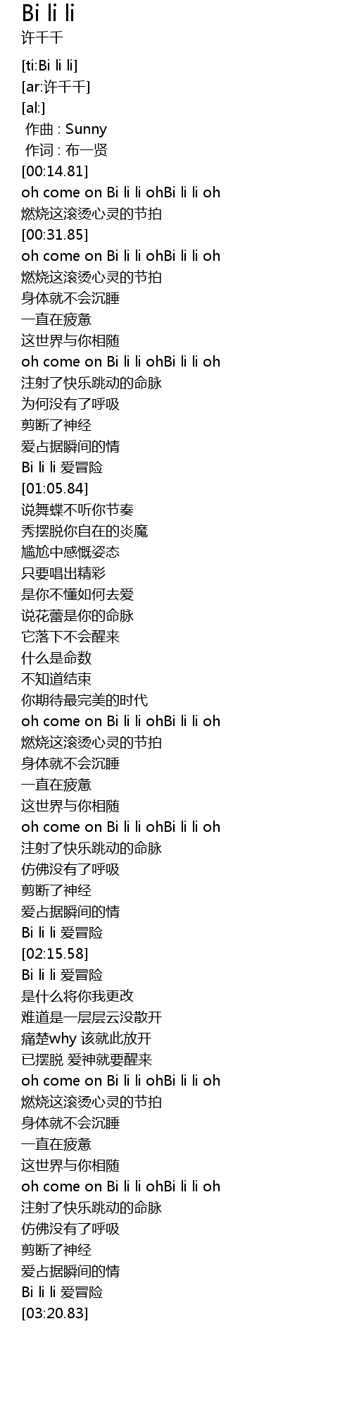 | [03:17.29] | Bi li li 爱冒险 |