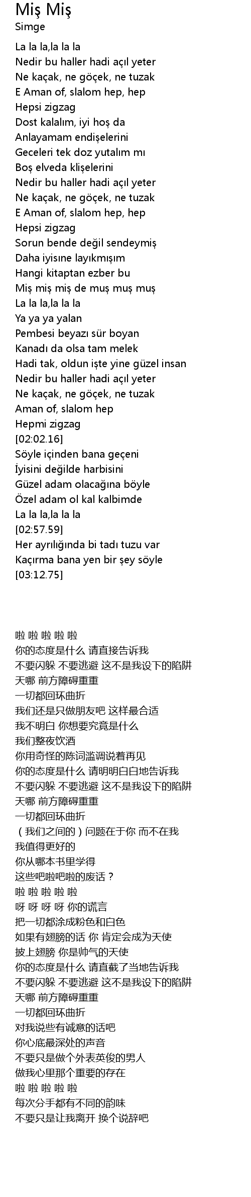 | [01:18.39] | Miş miş miş de muş muş muş |