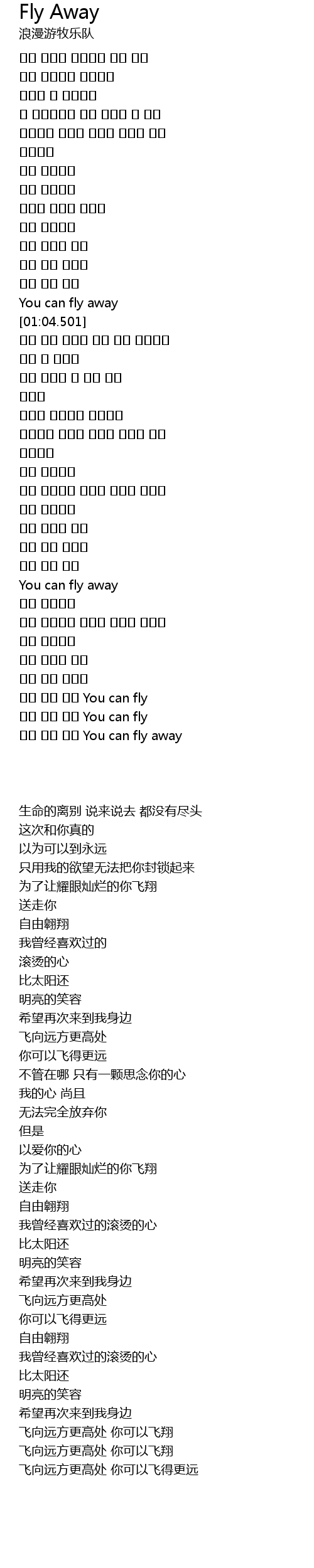 | [01:01.501] | You can fly away |