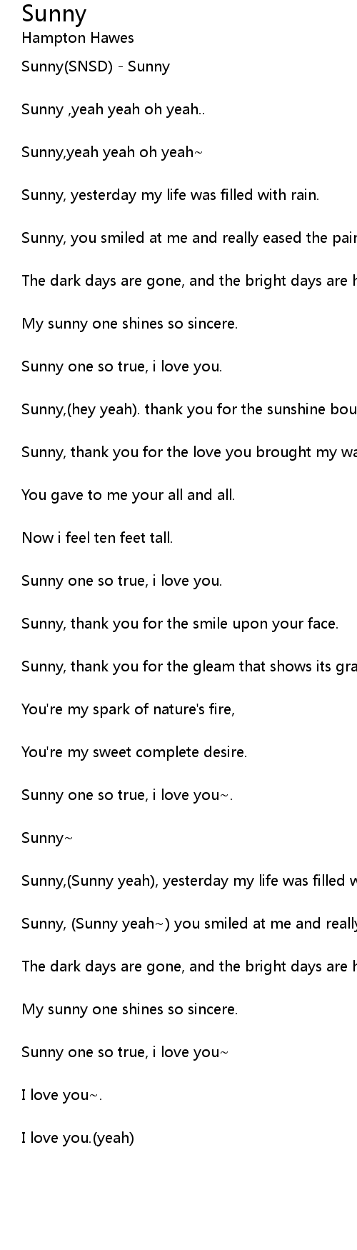 Sunny,(Sunny yeah), yesterday my life was filled with rain.