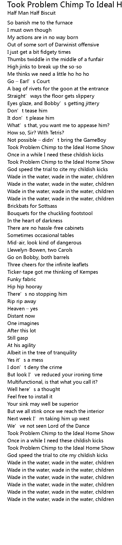 | 歌曲 | Took Problem Chimp To Ideal Home Show |
