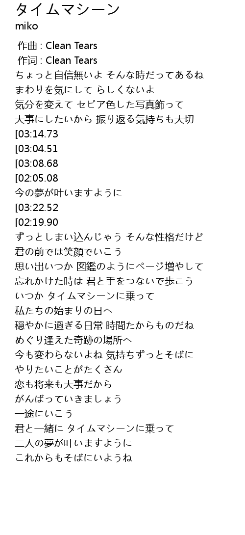 | [03:00.10] | 君と一緒に タイムマシーンに乗って |