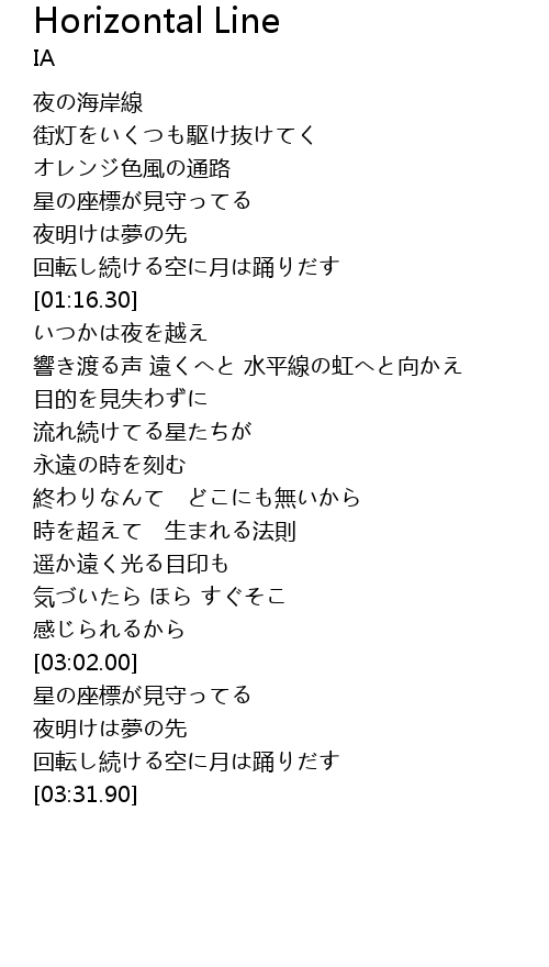 | [00:43.90] | 夜の海岸線 |