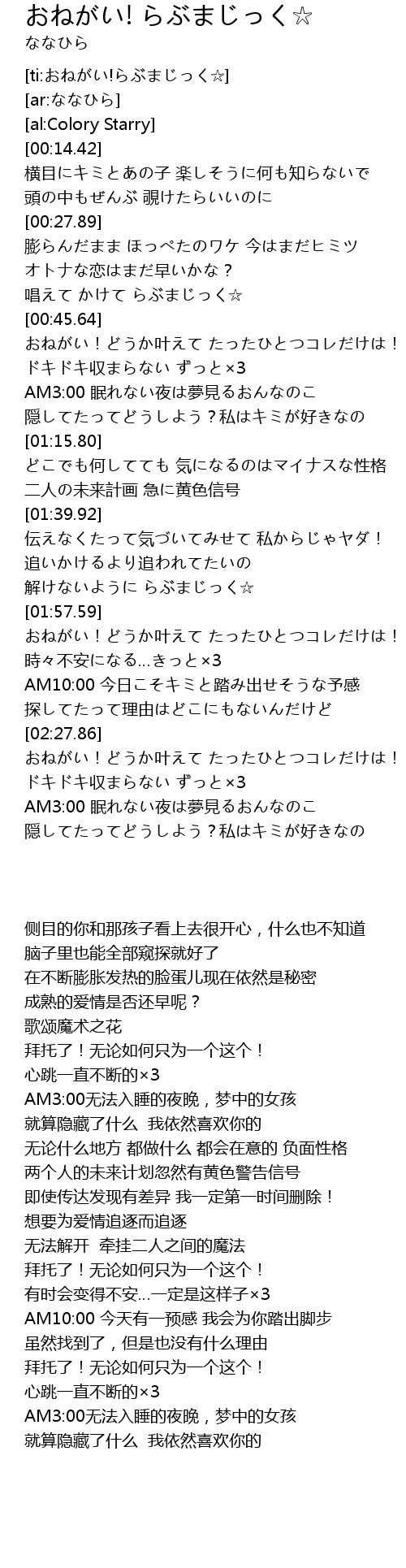 | [00:45.82] | おねがい!どうか叶えて たったひとつコレだけは! |