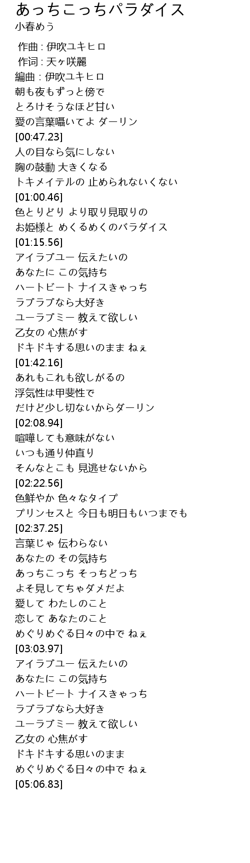 | [01:07.28] | お姫様と めくるめくのバラダイス |