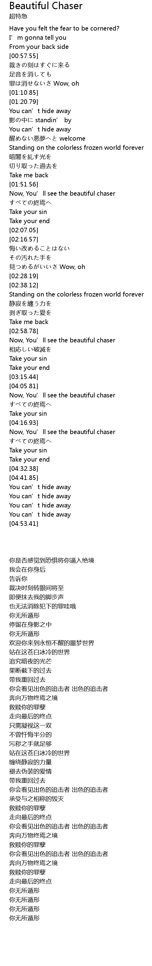 | [01:52.61] | Now, You’ll see the beautiful chaser |