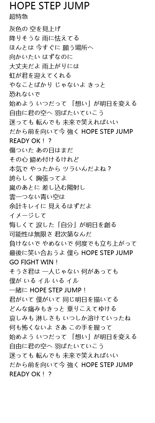 | [03:12.390] | 一緒に HOPE STEP JUMP! |