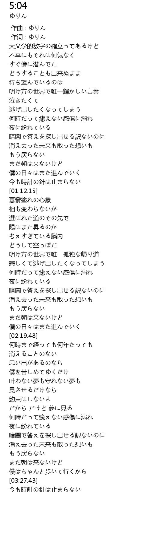 | [03:48.48] | 今も時計の針は止まらない |