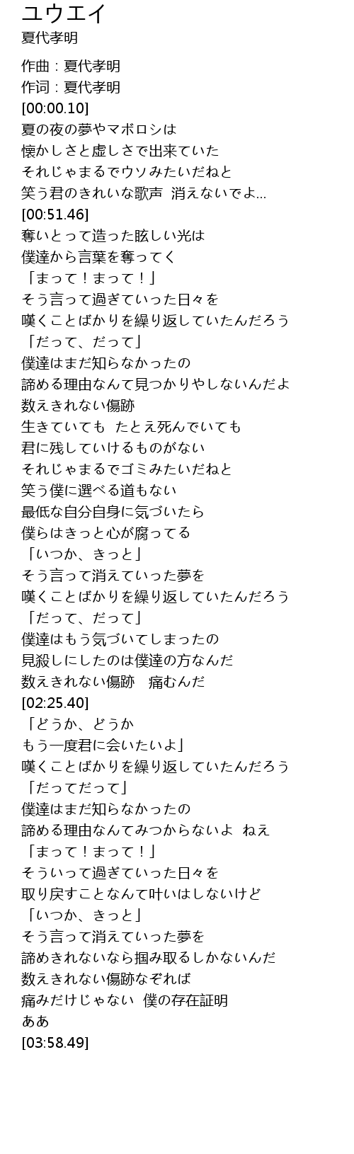 | [00:20.13] | 夏の夜の夢やマボロシは |
