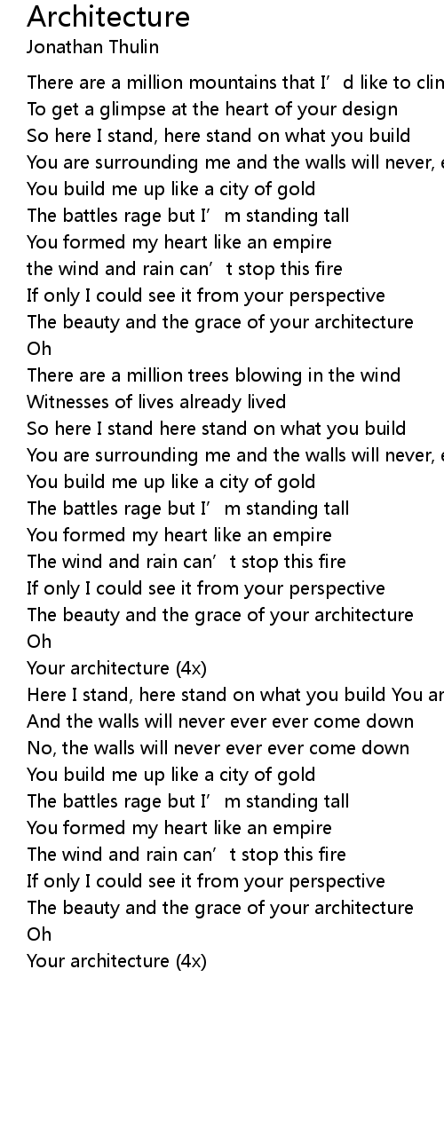| Here I stand, here stand on what you build You are surrounding me 3x | |