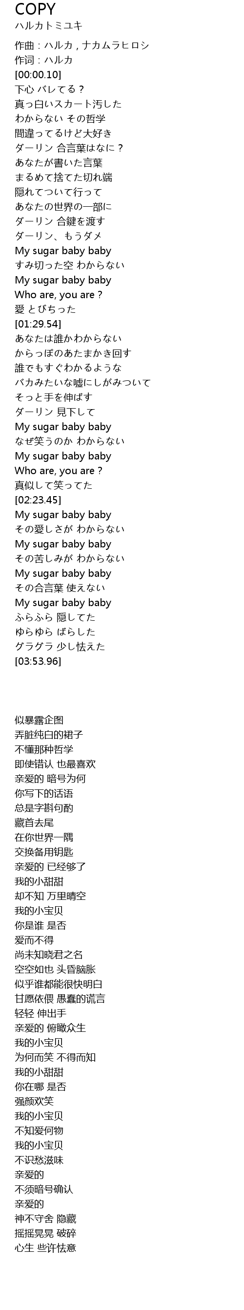 作词:ハルカ |