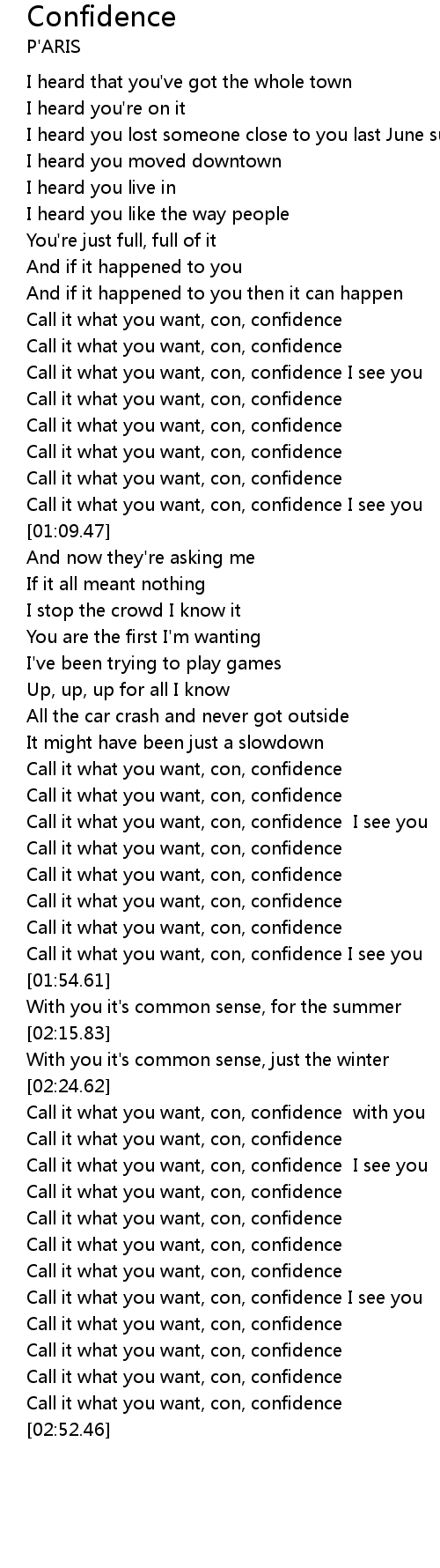 Call it what you want, con, confidence I see you |