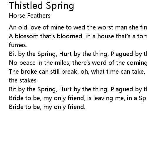 Bit by the Spring, Hurt by the thing, Plagued by the memories that it brings.