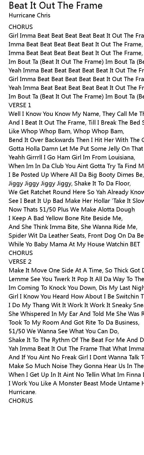 Yah Imma Beat It Out The Frame That What Imma Do, |