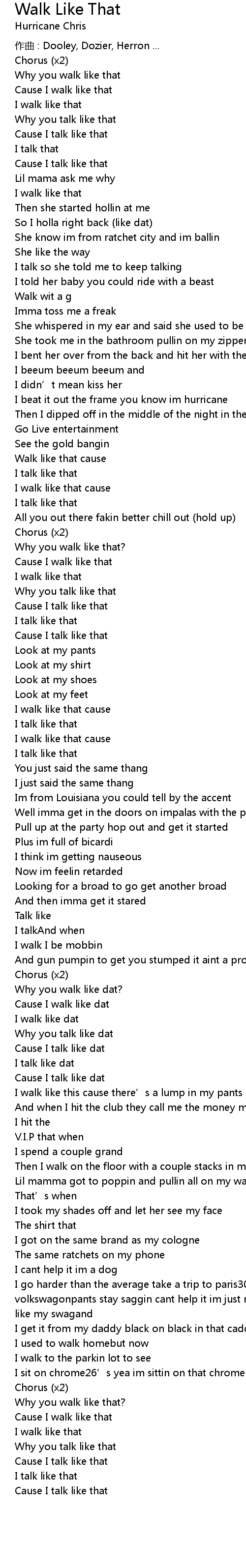 | Cause I walk like dat | |