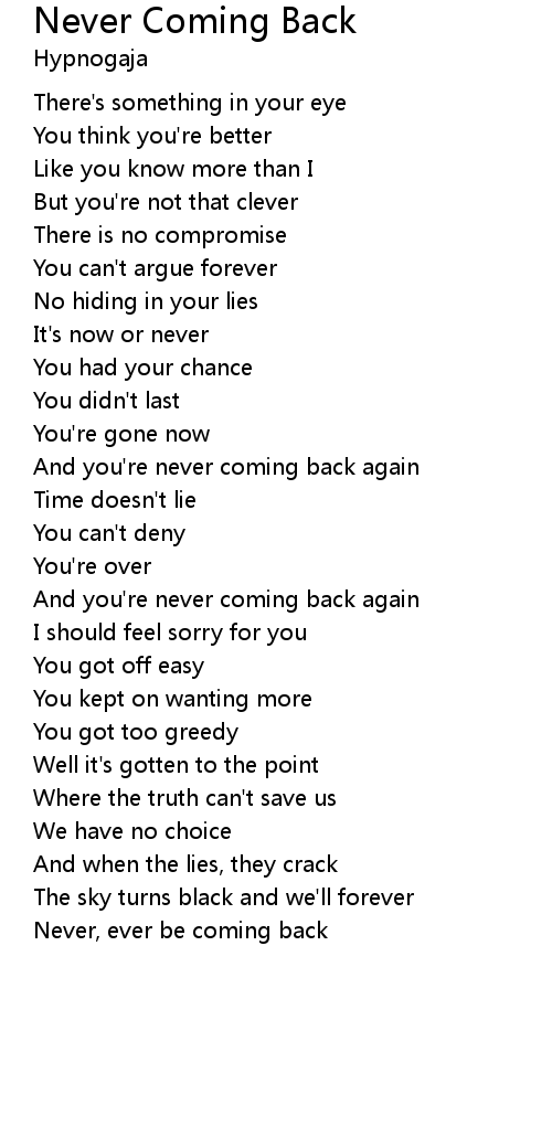 Never Coming Back 歌词